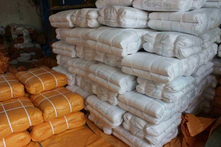 最后進行切割、熱合工序完成內(nèi)襯袋的生產(chǎn),最后進行套袋。